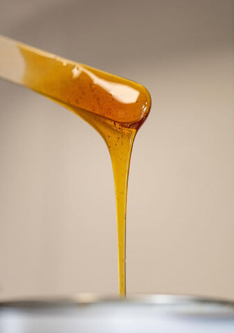 We use our longtime family recipe of just sugar, water, and lemon juice that adheres to hair only (never the skin!) on the bikini area, legs, arms, and more.